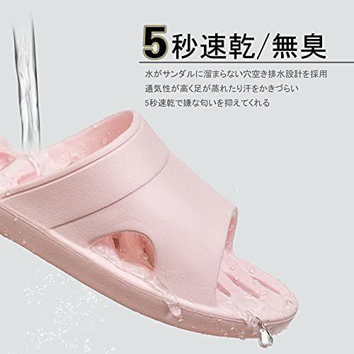 【5秒速乾で嫌な匂い0!】 水がサンダルに溜まらない穴空き排水設計を採用。このサンダルを履いてお風呂に入ると足裏に水が溜まらないため、浴室から出た後に部屋の床が湿る心配はありません。また通気性が高く足が蒸れたり汗をかきづらいので、不快感や嫌な匂いを抑えてくれます。湿度の高い時期や真夏の暑い時期にぴったりのサンダルです。