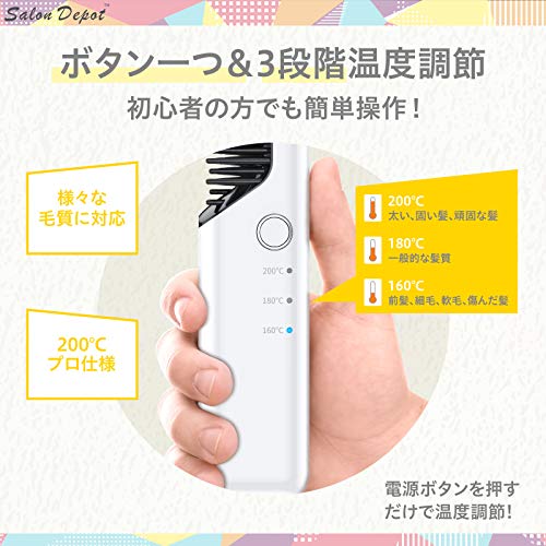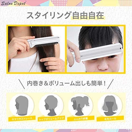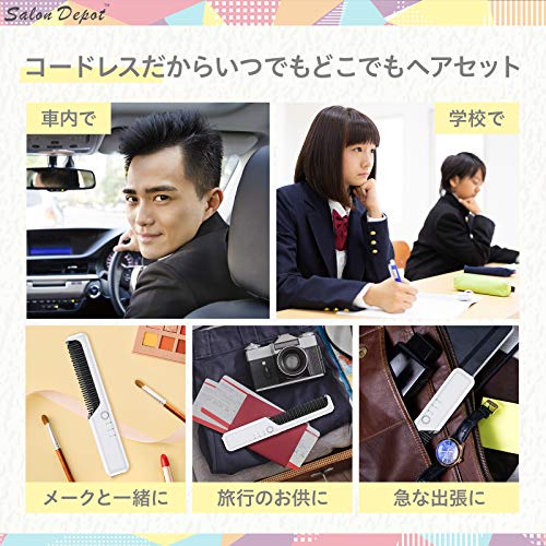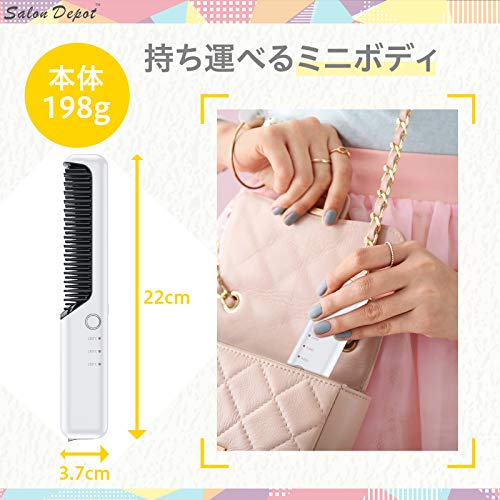 ストレートヒートブラシ salon depot ヘアアイロン コードレス ブラシ型 usb充電式 2way カール ミニ 3段階温度調整