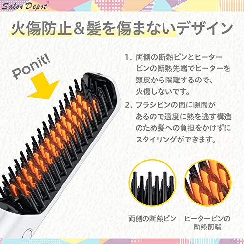 | 商品名 | ストレートヒートブラシ salon depot ヘアアイロン コードレス ブラシ型 usb充電式 2way カール ミニ 3段階温度調整 |