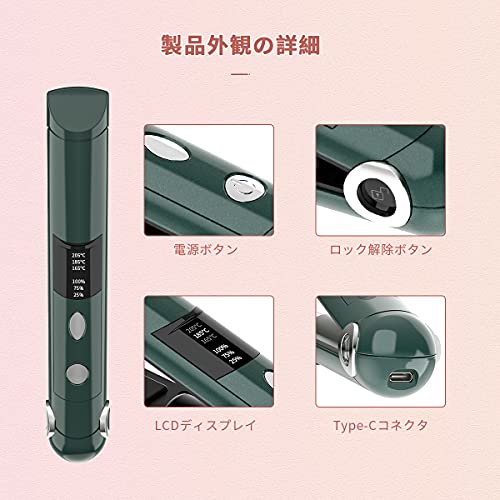 KEYNICE ヘアアイロン コードレス ストレート カール 2way ミニ USB充電式 165/185/205[度] 三段階温度設定可能 自動OFF