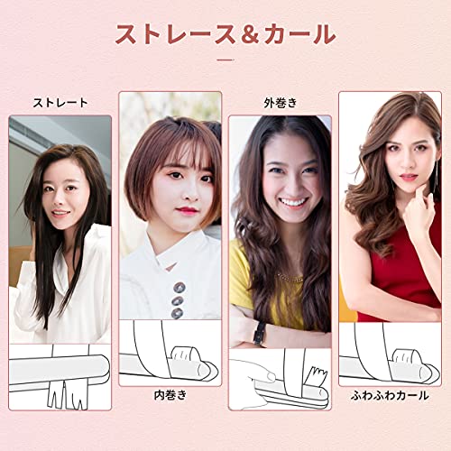 【ストレート&カール2way仕様】ストレート・カールへの切替は自由です。このヘアアイロン一本で、ストレートだけでなくカールや外ハネヘアも可能です。縮毛矯正レベルの200[度]を実現し、ご気分に合わせて髪スタイルの変更が簡単になります。
