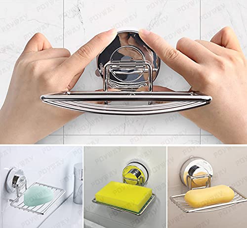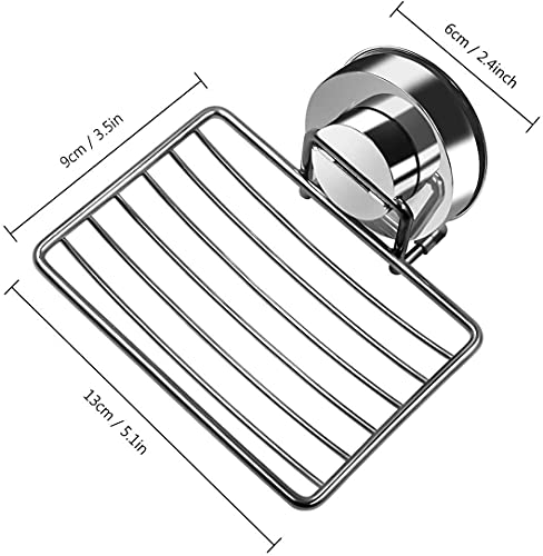 【ステンレススチール】ソープディッシュ本体は錆防止できるステンレススチールです。水切りタイプで、ソープはいつも乾燥で保存できます。寸法:13.5 9 10cm;吸盤径:6cm