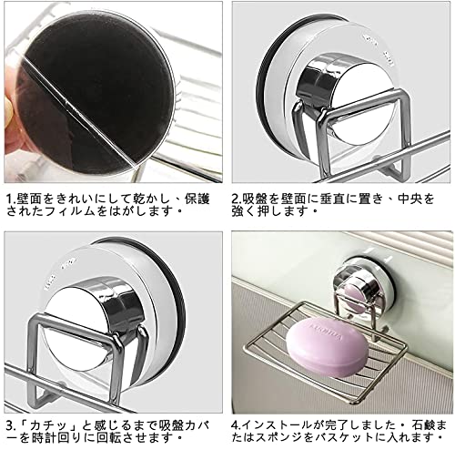 【壁に傷ない】釘なし、壁に穴あけない、傷ない簡単なインストール手順です。コンパクトの構造で、繰り返し利用できる吸盤とステンレスの棚本体で組立た後すぐ利用始めます。