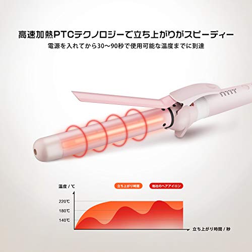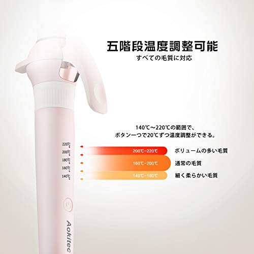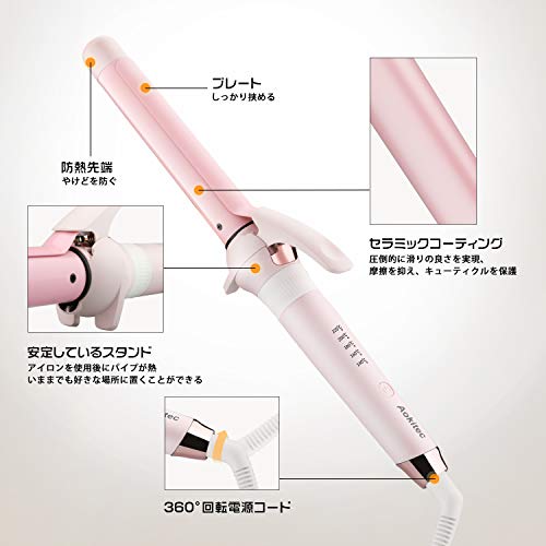 セラミック ヘアアイロン Aokitec カール 巻き コテ 25mm マイナスイオン 海外対応 プロ仕様 MAX220[度] 自動電源OFF