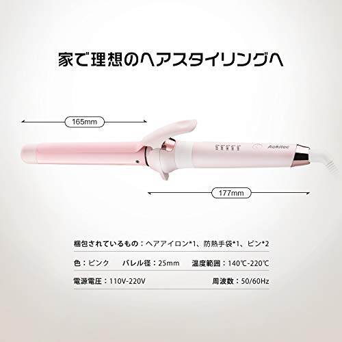 | 商品名 | セラミック ヘアアイロン Aokitec カール 巻き コテ 25mm マイナスイオン 海外対応 プロ仕様 MAX220[度] 自動電源OFF |