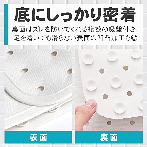 滑りや転倒を防ぐ浴槽用の滑り止めマットです。しっかり浴槽の底に吸着してくれる裏面の吸盤と、凹凸加工された表面が二重で滑らないようになっています。