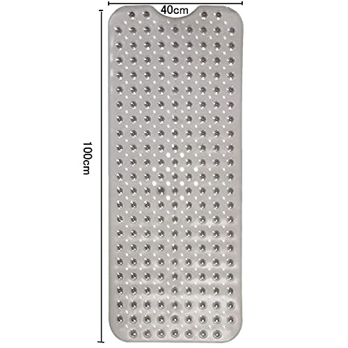 FUNTRESS お風呂マット バスマット シャワーマット 滑り止め 吸盤つき 転倒防止 100*40CM (透明グレー)