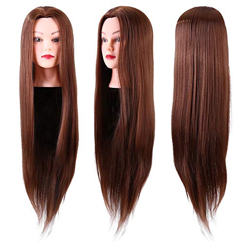 合成ウィッグ レディー 100% 合成毛髪 美容師の頭 合成茶色頭 長いかつら クランプヘッドスタジオマネキンの