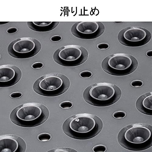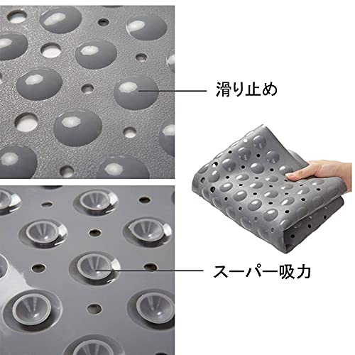 【排水穴と吸盤】排水穴で水が迅速に流れて、カビや細菌を免れます。裏面が全面に吸盤で床としっかり吸着固定、乗っても滑りにくくなっています。
