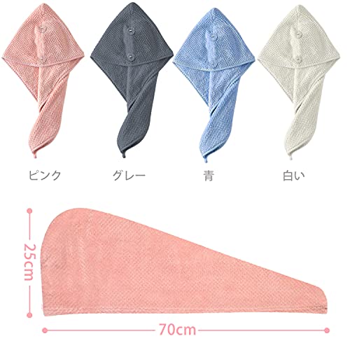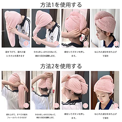 ? 吸水性と速乾性抜群:ヘアタオルは高品質なマイクロファイバー素材が採用されますが、ぐんぐん吸水でき、サッと乾かれます。ヘアキャップの吸水量が従来タオルにより5倍ですが, 仕上げのドライヤー時間を大幅に短縮でき。そのため、より速く、より効率的に乾かすことができ、速乾性に優れているため、より