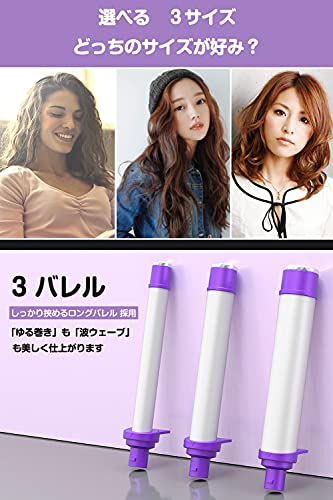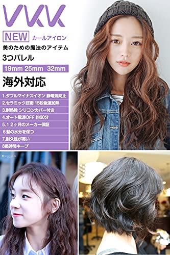 【ヘアアレンジも自由自在に 】 三つバレル 19mm 25mm 32mm【 32mmバレル 】ミディアムからロングに好適な人気の32mmバレル 「ゆる巻き」も「波ウェーブ」も美しく仕上がります 熱伝導性も高く しっかりと髪を挟み均一に熱を伝えて瞬時にスタイリング。 【 人気の25mmバレル】 ショートからミディアム ボブに好適な人気の25mmバレル 「ゆる巻