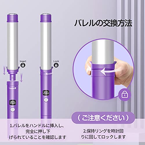 (三種類バレル) カールアイロン コテ マイナスイオン ヘアアイロン カール 温度LCD表示 セラミックコーディン