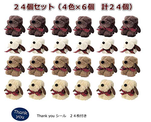 もこもこ素材のかわいいわんちゃん型ハンカチタオル。1色ずつクリアケース入りなので、ちょっとした贈り物におすすめです。24個セットなので、まとめ買いにおすすめ。