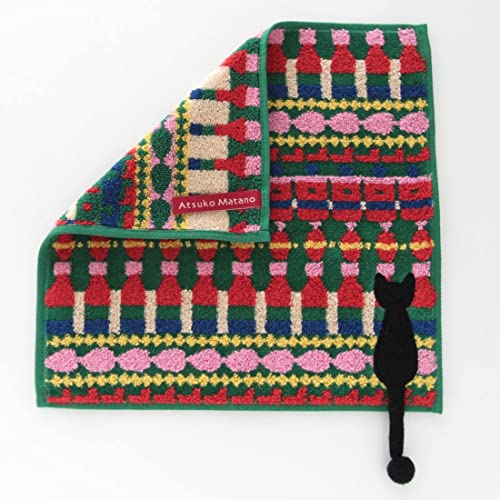 アツコマタノ タオルハンカチ (グリーン) <ドリンクコーナー> (綿100%) 婦人 ネコ ハンドタオル 25cm 181003-2