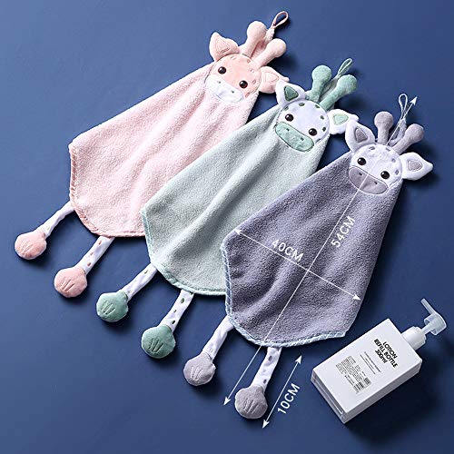 Tibemi 3枚セット お手拭きタオル ループ付き 可愛い鹿ハンドタオル 速乾タオル ふわふわ吸水性 家庭用 キッチ
