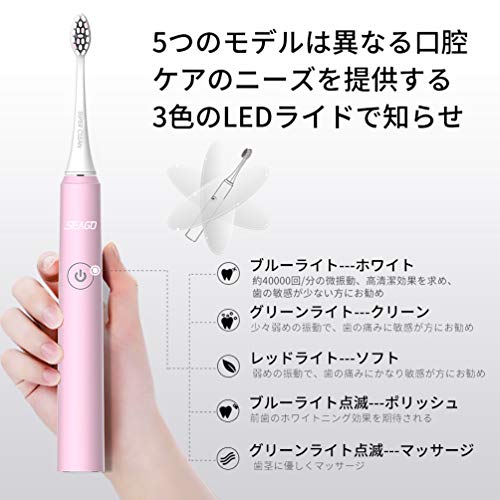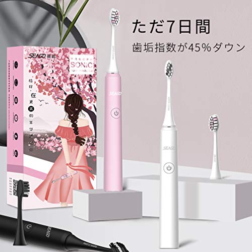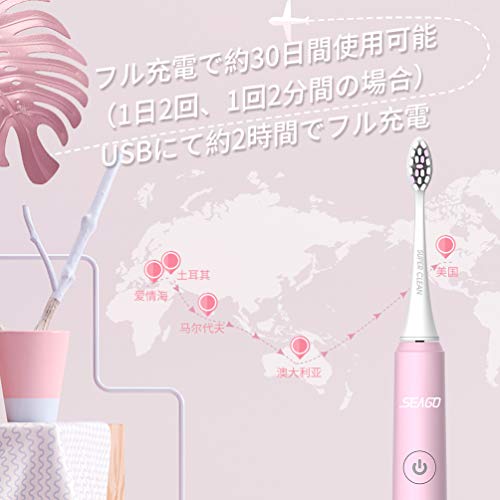 電動歯ブラシ 歯ブラシ seago音波ハブラシ 充電式 ソニック 替えブラシ2本付き 8時間急速充電で30日間持続使用