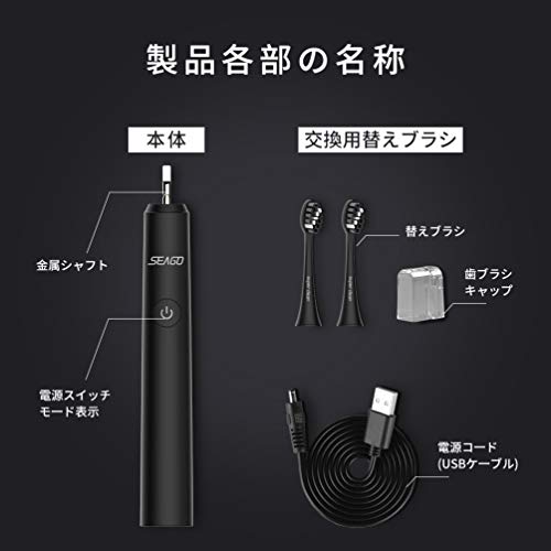 | 商品名 | 電動歯ブラシ 歯ブラシ seago音波ハブラシ 充電式 ソニック 替えブラシ2本付き 8時間急速充電で30日間持続使用 |