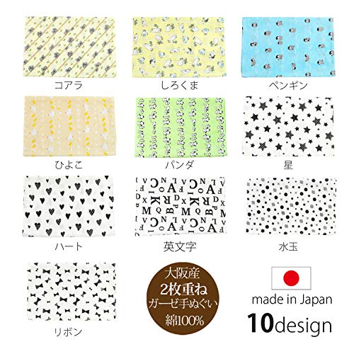 日本手ぬぐいを2枚重ねガーゼ状にし可愛くてポップなデザインをプリント。