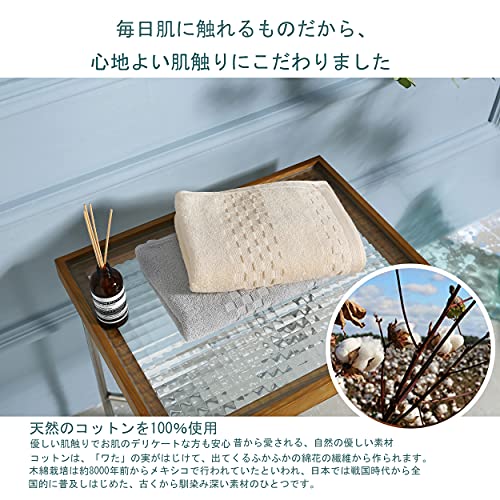 【安心な天然素材のフェイスタオル】昔から愛される、自然の優しい素材コットン100%使用、安心にお使いいただけます。