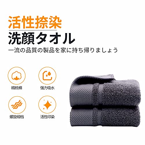 フェイスタオル 2枚セット タオル 綿100% 柔らかな肌触り ふんわり 瞬間吸水 速乾 家庭用、ホテル、スポーツな