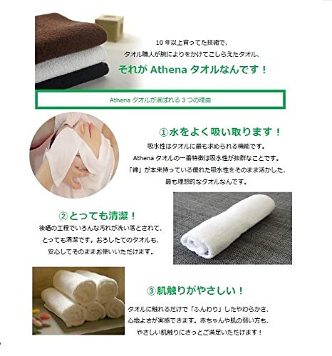 | 商品名 | ATHENA 超耐久34cmx86cm プロ仕様 洗濯100回超え! 業務用 無地フェイスタオル 100%綿 色落ちしにくい 実績1億枚超 |