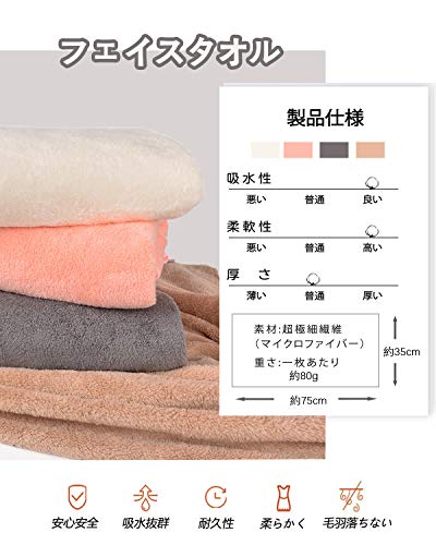 【材質】:ポリエステル80%、ナイロン20%高級マイクロファイバー素材を採用 - 伝統的な綿タオルと比べると、このタオルは毛髪の1/100超微細繊維(マイクロファイバー)で作られたフェイスタオルです、触り心地最高、優しくてやわ らかい肌触りです、やさし い仕上げに蛍光染料は使用 しておりません。品質:このタオルが色褪せない、毛羽落ちしないことを保証します。