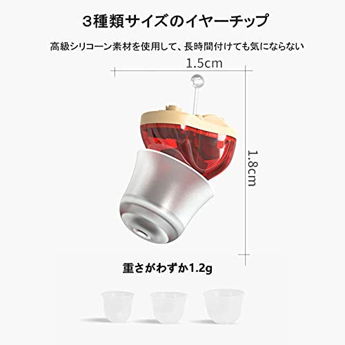 集音器 CIC 耳あな 小型 音量調節 ノイズ抑え 電池式 イヤーチップ付き 取扱説明書 (白い, 左耳)