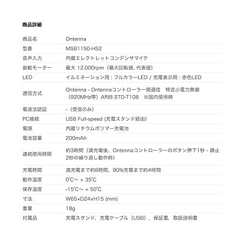 Ontenna(オンテナ)は、髪の毛や耳たぶ、えり元やそで口などに身に付け、振動と光によって音の特徴を、からだで感じる全く新しいユーザインタフェースです。60~90dBの音を256段階の振動と光の強さに変換し、 音の特徴を伝達します。 音源の鳴動パターンをリアルタイムに変換することで、 音のリズムやパターン、 大きさを知覚することができます。 反応する音量と光のON/OFFを切り替えられる機能も搭載しています。