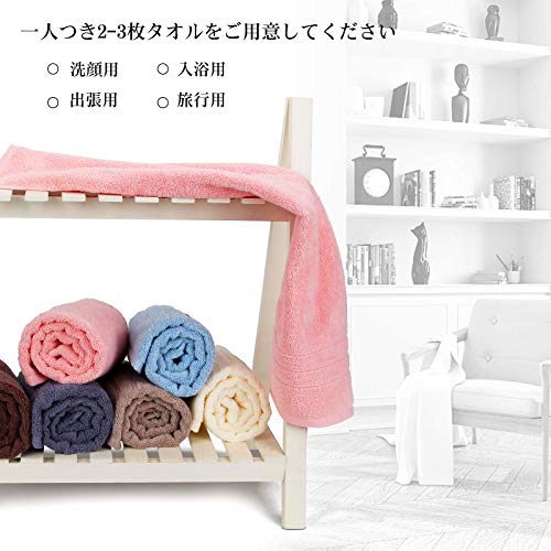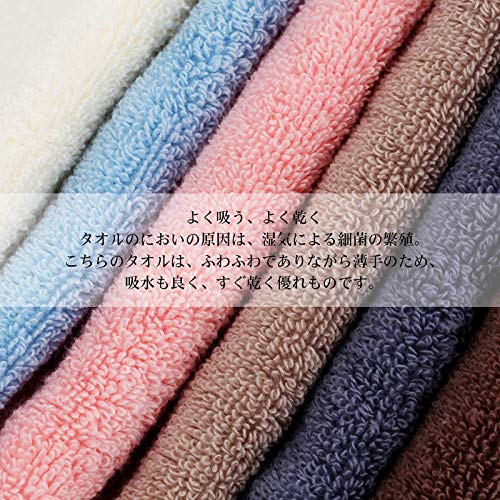 【フェイスタオル6枚セット】素材:綿100%。製品サイズ:約33cm×75cm。製品重量:約100g(1枚あたり)。内容:6枚セット。カラー:ピンク、ホワイト、ブルー、ブラウン、グレー、コーヒー(各色1枚ずつ)。ご使用について:使い始めはやや毛羽があり、ご購入後1~2回水通しをお願い致します。2回目あたりから毛羽落ちが軽減されます。