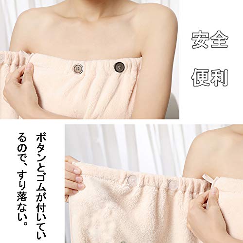 【可愛いラップタオル】ボタンがついているので、ズレ落ちる心配はありません。ジムやプール、温泉などでシャワーの後にサッと巻けると可愛いです。