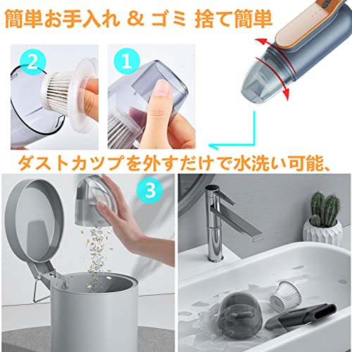 【無線&軽量&携帯】この手持ち式真空掃除機のコードレスは、あなたの清掃作業により多くの便利さを提供しています、410グラムだけで。持ち運び便利なコードレス、片手で簡単に掃除、軽量でコンパクトなデザインで、好きなように移動できます。携帯しやすく、保存しやすい。