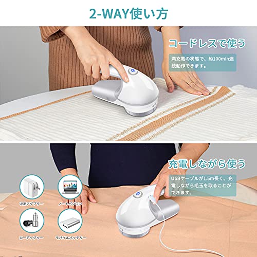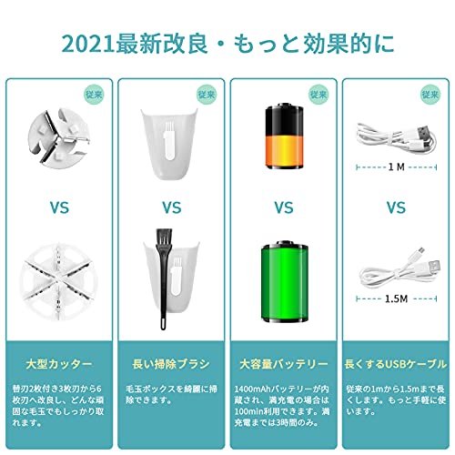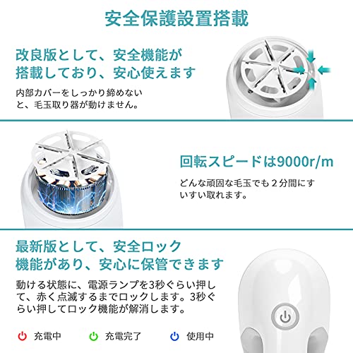 【大幅改良安全装置した付属品】(1)毛玉取り器はセキュリティー保護設置が内蔵しており、内部カバーをしっかり締めないと、毛玉取り機が動けないので、お子様がある家族でも安心して使うことができます。(2)長い掃除ブラシ従来品より手軽に掃除できます。毛玉ボックスを綺麗に