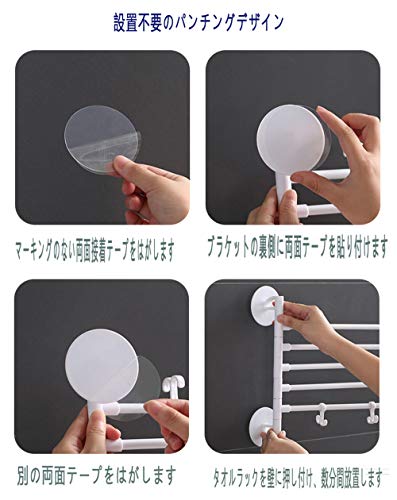 | 商品名 | タオルハンガー タオル掛け 4本 スイングアーム 壁掛けフック ふきん掛け タオル収納 バスラック 穴あけ不要 |