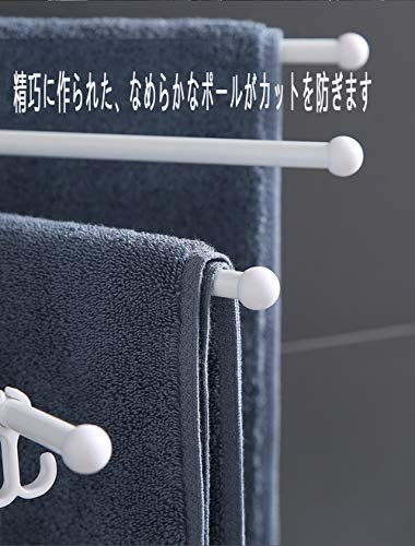 タオルハンガー タオル掛け 4本 スイングアーム 壁掛けフック ふきん掛け タオル収納 バスラック 穴あけ不要