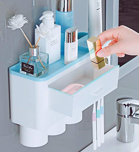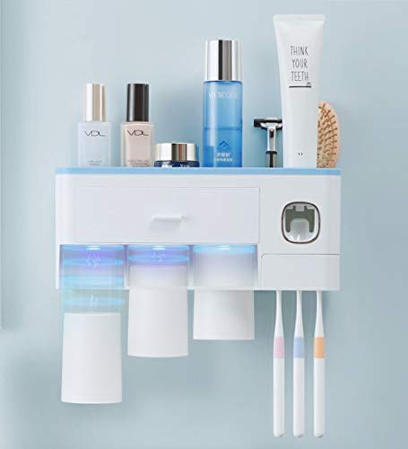 【自動歯磨き粉ディスペンサー】自動歯磨き粉絞り器を搭載した歯ブラシホルダーです。 ディスペンサーは、歯磨き粉の無駄を防ぐために毎回最適な量をしぼって、自動的に元へと配ってくれます。