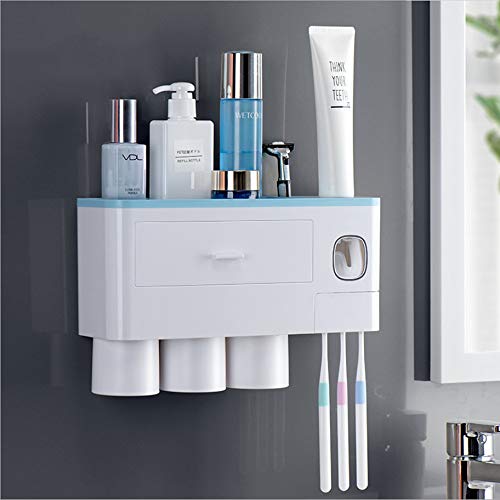 歯ブラシスタンド Veeki歯ブラシホルダー壁掛け 歯磨き粉ディスペンサー 歯磨き粉な自動 洗面台 収納 3カップ