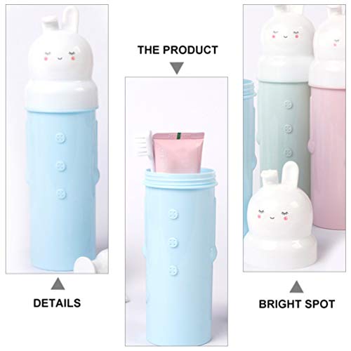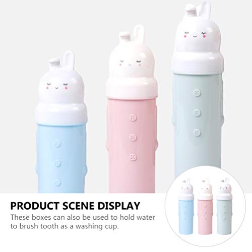Frcolor 3個旅行歯ブラシケースプラスチックウサギのデザインポータブル歯ブラシホルダー吸引カップ歯磨き粉