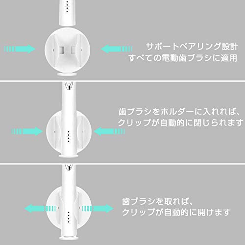 【置くだけでフィットします】電動歯ブラシを入れると両側のクリップが自動的に閉じ、片手で取り付け、着脱は一秒しかかかりません。歯ブラシを取り出すとクリップが自動的に開くというユニークなデザインで、歯ブラシを傷つけません 。