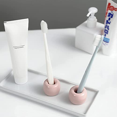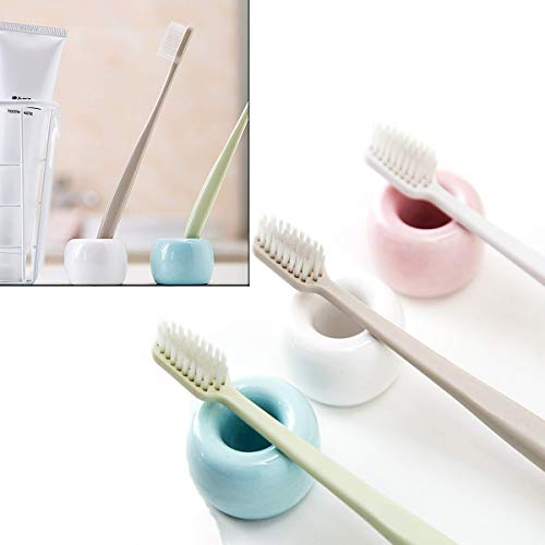 セラミック歯ブラシスタンド、ミニ浴室用収納オーガナイザー用ハンドメイド歯ブラシホルダースタンド (3ピ