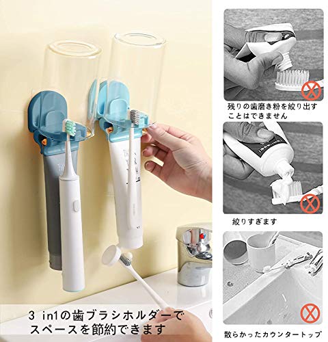 壁に取り付けられたInmorven歯ブラシホルダー2パック、多機能歯磨き粉スクイーザー、省スペースの歯ブラシホ