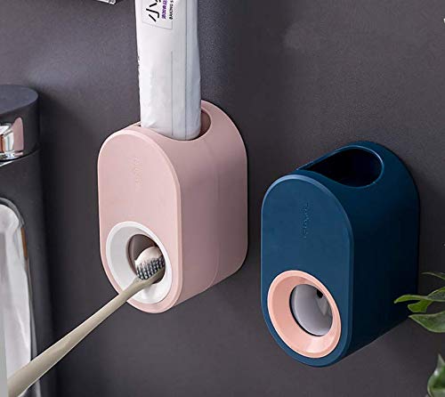 壁掛け式 自動歯磨き粉ディスペンサー 使用便利 取り付け簡単 穴開け不要 取り外し可能 洗える 家族用 (ピ