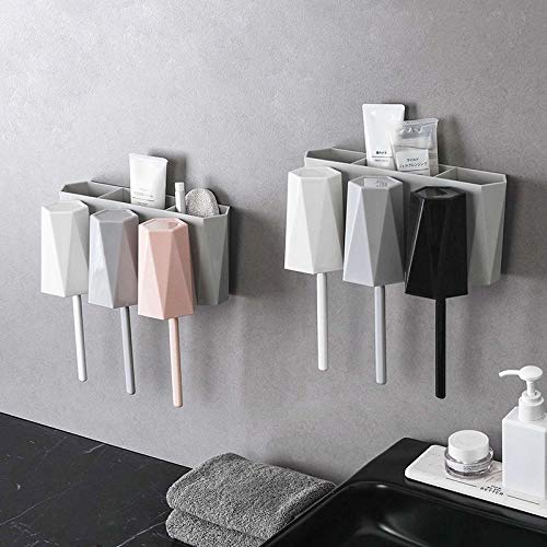 歯ブラシスタンド 吸盤 コップ3個付き 歯ブラシホルダー 壁掛け 防塵衛生 家族用 洗面所 収納 (ブラックグレ
