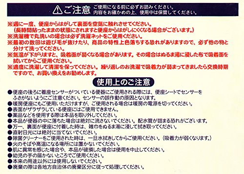ご使用上の注意:1 週に一度、便座からはずして裏面を空気に触れさせてください。長時間貼ったままだと便座からはがれにくくなる場合があります。2 適度に洗濯して清潔を保ってください。繰り返しの洗濯で吸着力が弱まってきたら交換時期です。