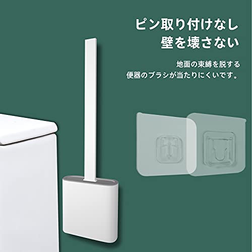トイレブラシ、シリコン、トイレとトイレの360°クリーニング、壁に取り付けることができる白い収納ボック