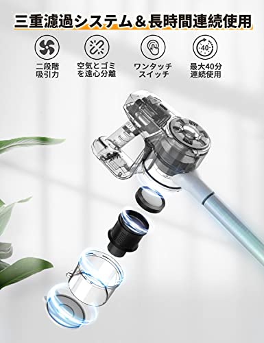 コードレス掃除機 N3 超軽量 スティッククリーナー 超大吸引力 サイクロン式 17000kPa 操作簡単 40分間連続稼働