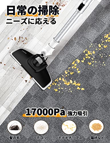 【コードレス掃除機&パワフル】N3コードレス掃除機はコード式掃除機にも負けない150Wパワフルなモーターを搭載します。17000Paの強力吸引で目に見えないゴミも強力に吸い取れます。強い吸引力を実感することができて、高効率的に掃除することができます。掃除時間の短縮にも効果的です。