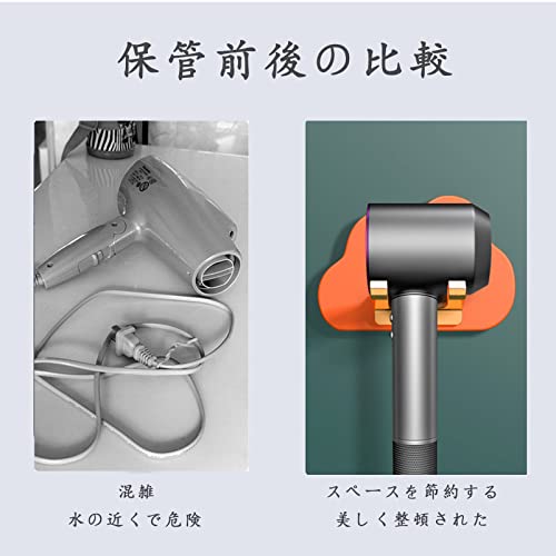 【完璧なデザイン】U字型の直径は約5CMです。壁に取り付けられたヘアドライヤーホルダーは、ダイソンなどのブランドのヘアドライヤーに非常に適しています。ヘアドライヤーホルダーの柔らかいTPRは、ヘアドライヤーを損傷から保護します。 ワイヤーは背面に巻き付けられているため、保管が簡単で、シンプルで美しいです。 棚板はスペースを取らずに折りたたむことができます。