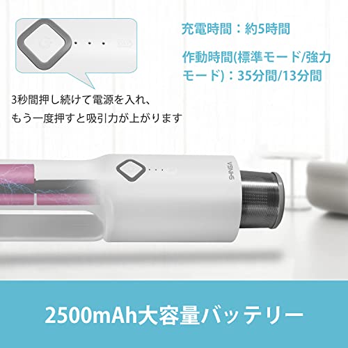 製品仕様:充電式掃除機電池容量:2500mAh、モータパワー:100W (標準モード) ー120W ( 強モード)、輸出電圧:10.8V 、サ輸入電圧:5V、 輸入電流:2A、超軽量:0.86Kg、サイズ :15×24×113cm