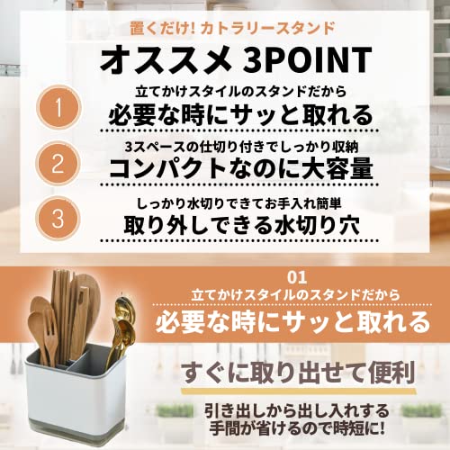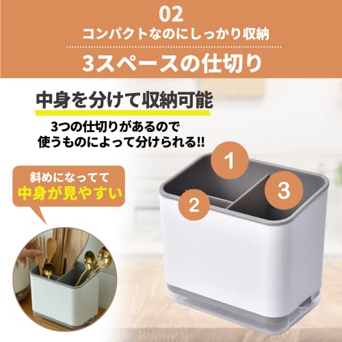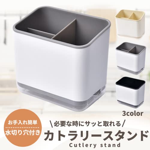 ANAMO キッチンツールスタンド カトラリースタンド 収納 水切り スタンド (グレー×ホワイト)