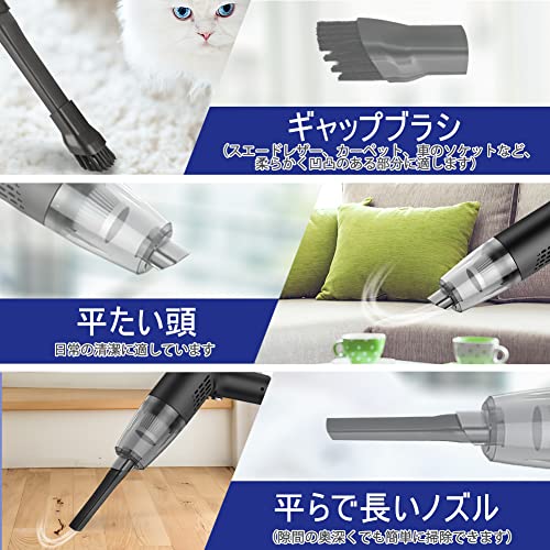 「充電式&30分間連続稼働」:2000mAhの電池を内蔵し、このハンディクリーナーは約3時間で完全に充電でき、最大30分間連続して動作します。小型軽量のハンドヘルド掃除機で、使用時に充電する必要がなく、とても便利です。バッテリー切れを気にせず、満足するまで掃除できます。バッテリーを保護するために、電圧保護、電流保護、温度保護システムなどの保護回路と機能を内蔵した最新の電源技術が採用されています。充電しながら製品を保護し、掃除機の寿命